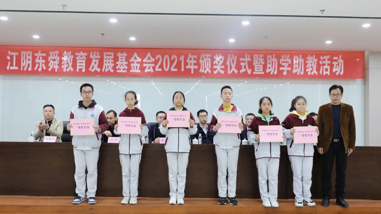 出席本次活動的領導有長涇鎮(zhèn)人民政府鎮(zhèn)長余江先生,長涇鎮(zhèn)黨委副書記劉訊風先生、長涇鎮(zhèn)人民政府副鎮(zhèn)長張明先生;東舜教育發(fā)展基金理事會名譽理事長周永南先生、副理事長顧建坤先生、副理事長徐軍先生、副理事長周鶴鳴先生、長涇鎮(zhèn)文教科長王麗君女士;長涇二中黨支部書記、校長趙建新先生,出席的來賓還有長涇二中的全體行政領導、教師代表、學生代表。